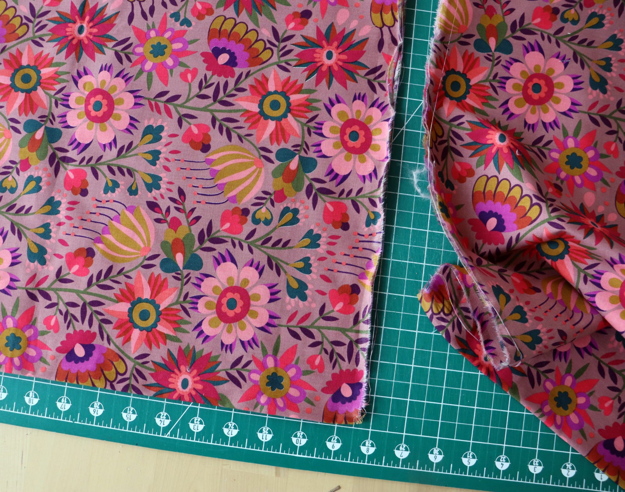 I learned something new and tore fabrics for the first time for this project. As a result my pieces are on-grain and the seams won’t roll or pull after washing. Tearing edges would be totally impractical with patchwork, but for a project like this with only two pieces, it makes a lot of sense.