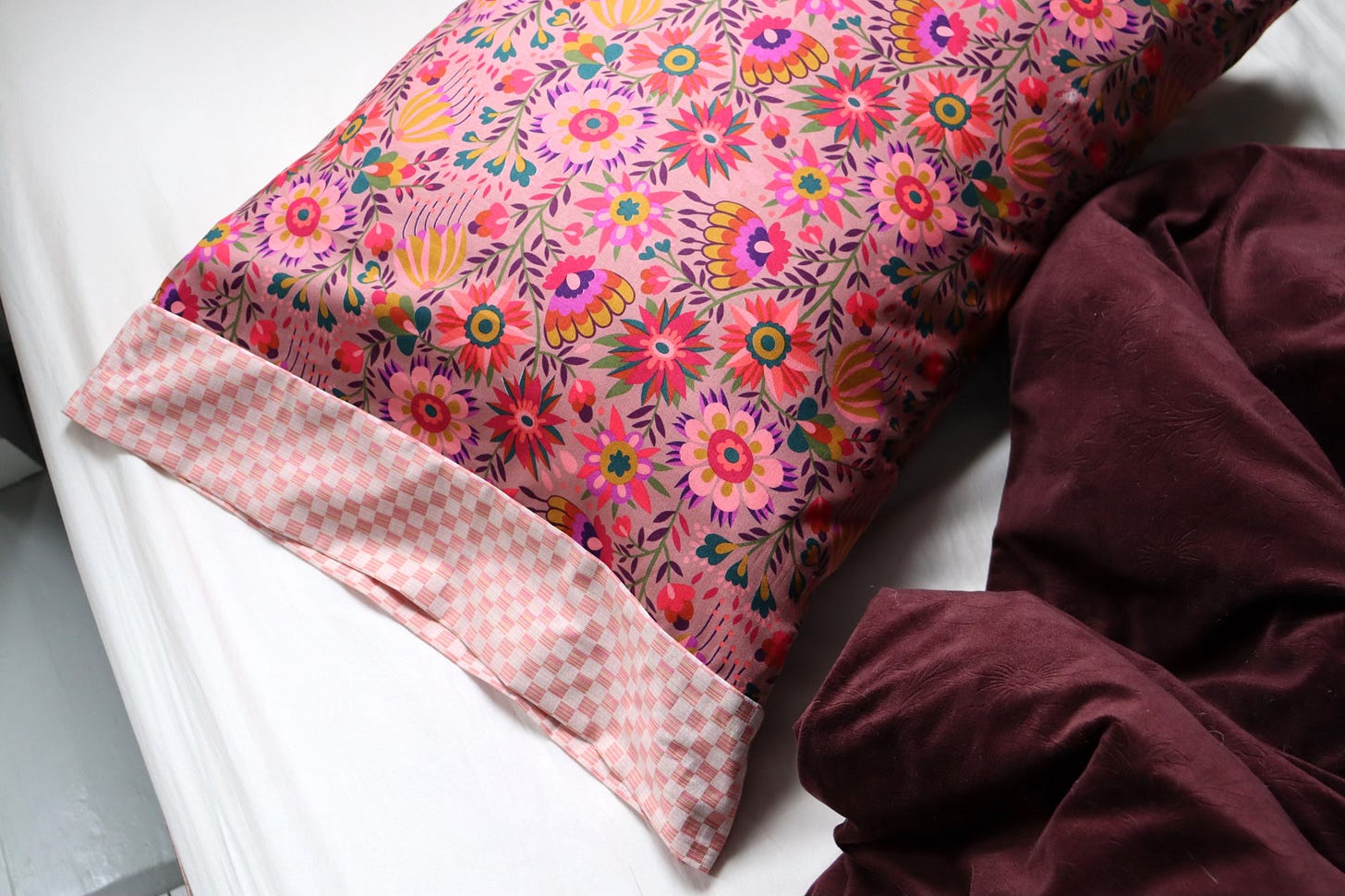 I used a Check Mates fabric for the cuff, also from Anna Maria Parry. It’s a silky-soft woven, which adds a nice texture to this totally luxurious pillowcase.