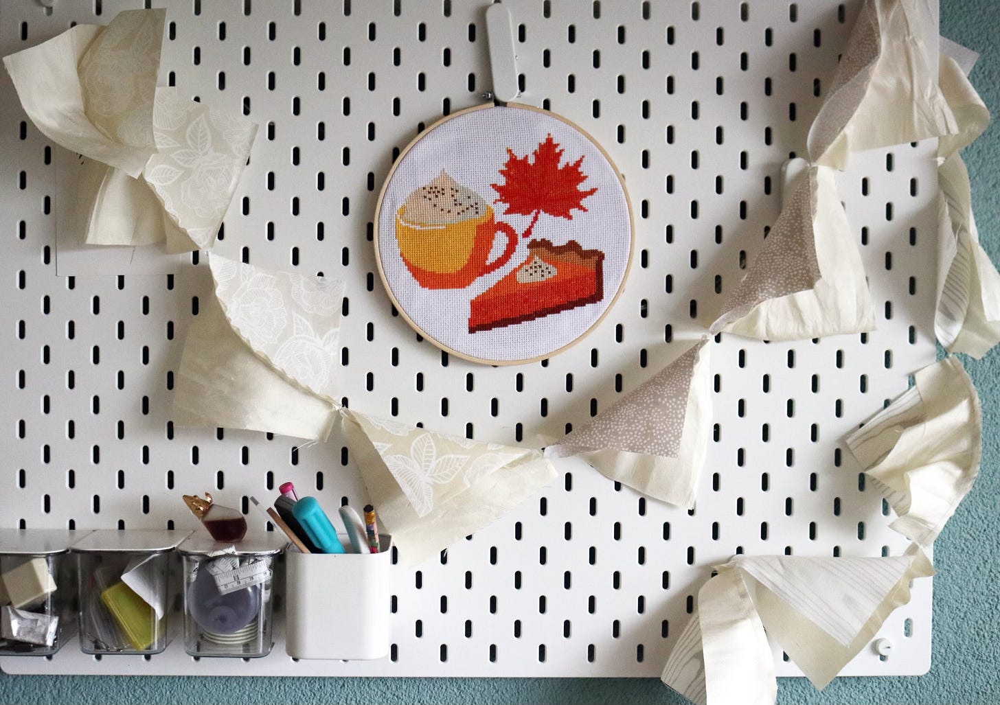 Now, that’s festive. Cheery autumnal cross stitch courtesy of José, one of my bestest Dutch friends. We meet every week for yoga and then discuss parenting, relationships, and our work as creative entrepreneurs over a cup of tea. I’m so lucky to have her in my life!