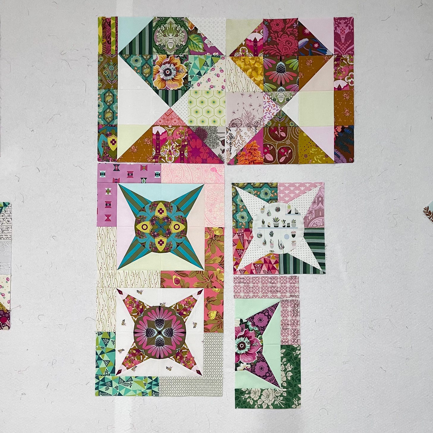 Patio + Thorn by Tilishess. Wow! Bold fabrics and strong value contrast make for eye-catching patchwork. Can’t wait to see more.