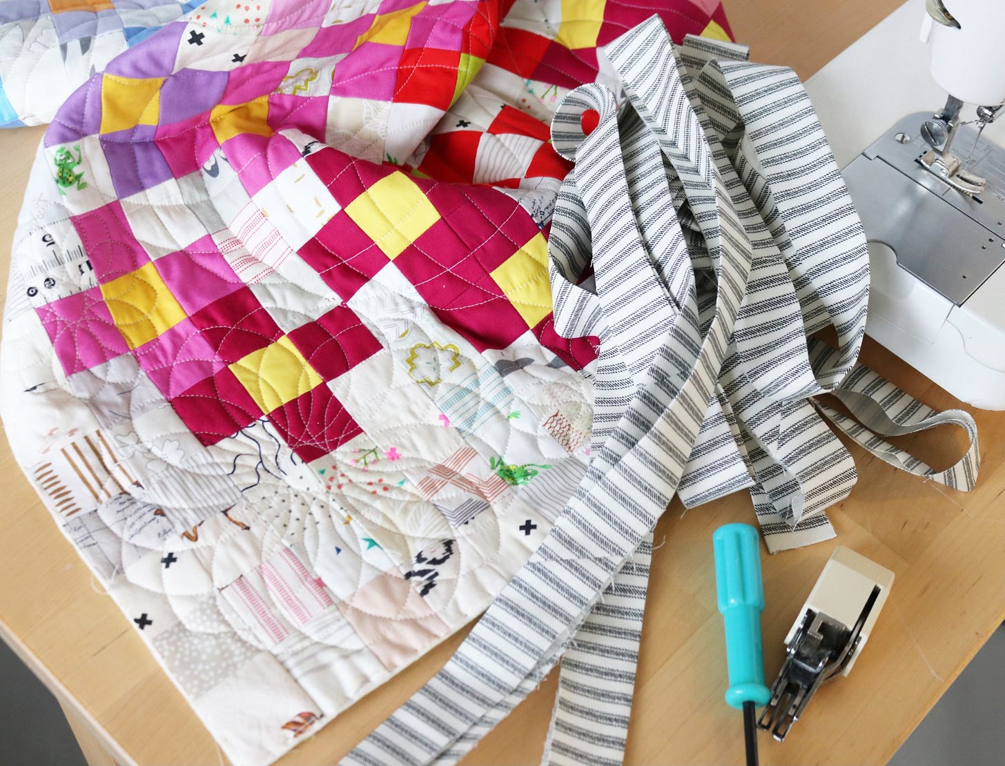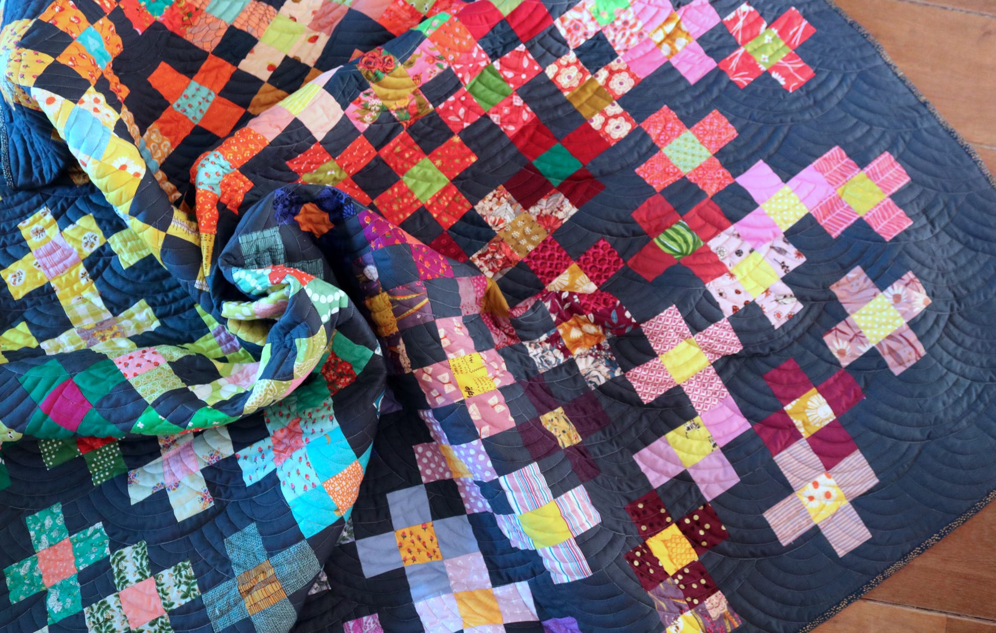 And this delightful quilt corner, trimmed and ready for binding! I attach my bindings with a walking foot, then wrap them around the edge and finish with a zigzag stitch (tutorial here). Doing everything by machine makes for a fast and sturdy finish. That zigzag is my signature, I suppose.
