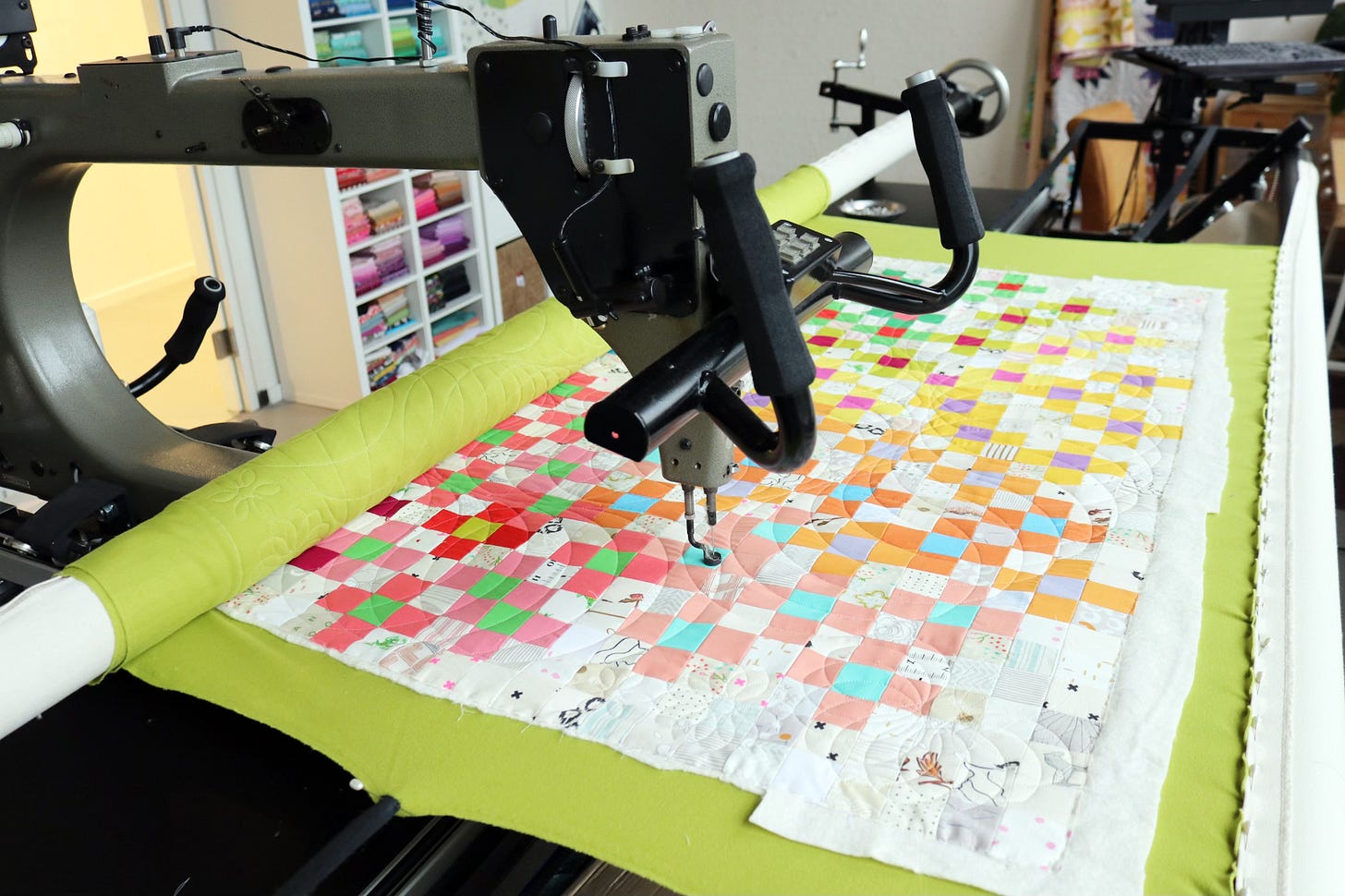 Second, my longarm hard at work. I do love this beast, even if she does cost a pretty penny to house. (psst, European quilters - send me your quilts!)