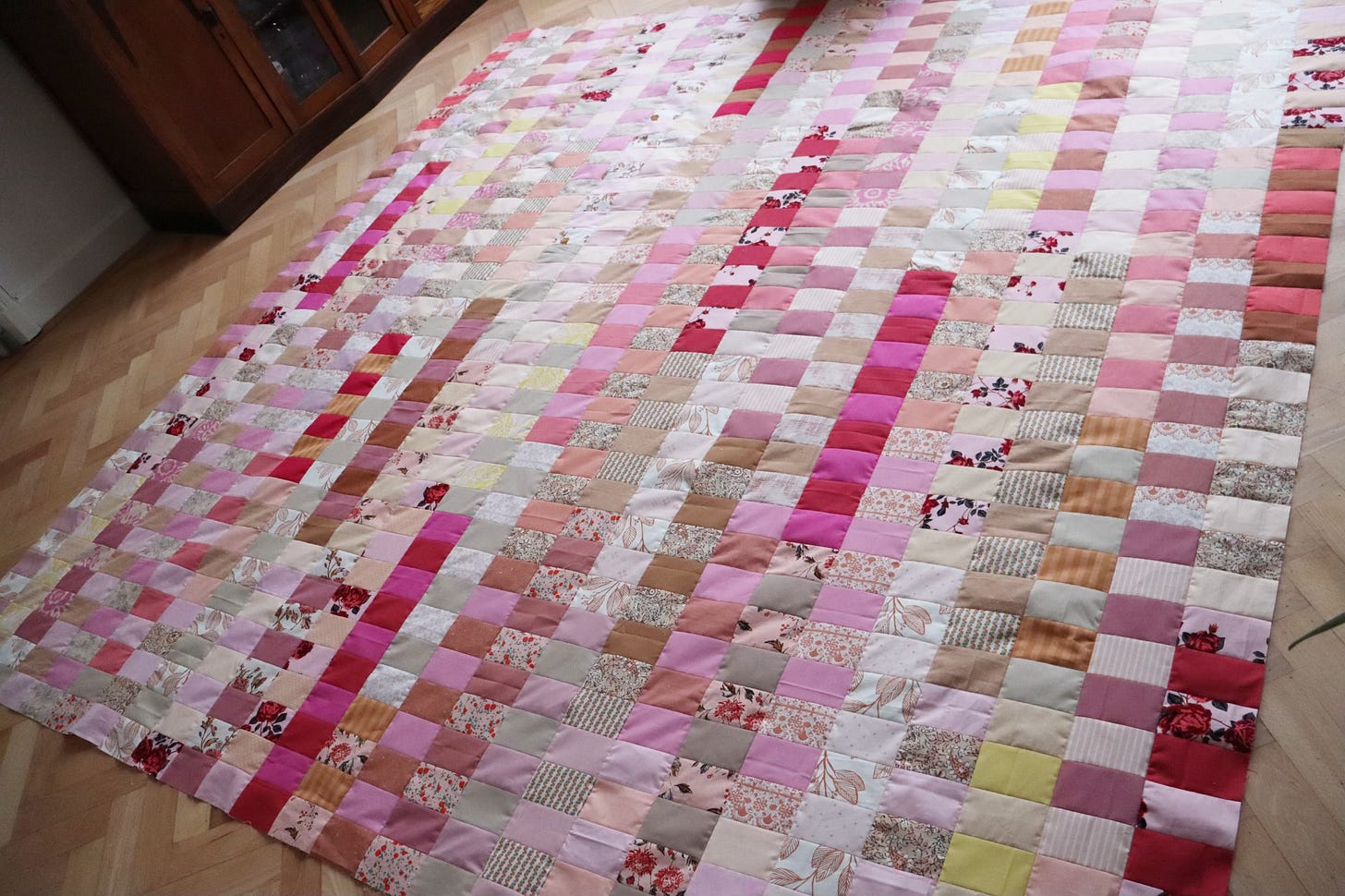 Ta da! That’s 100” square of pretty, pink goodness. I’ve named her Rosie because she blooms in just about every lovely shade of that elegant flower.