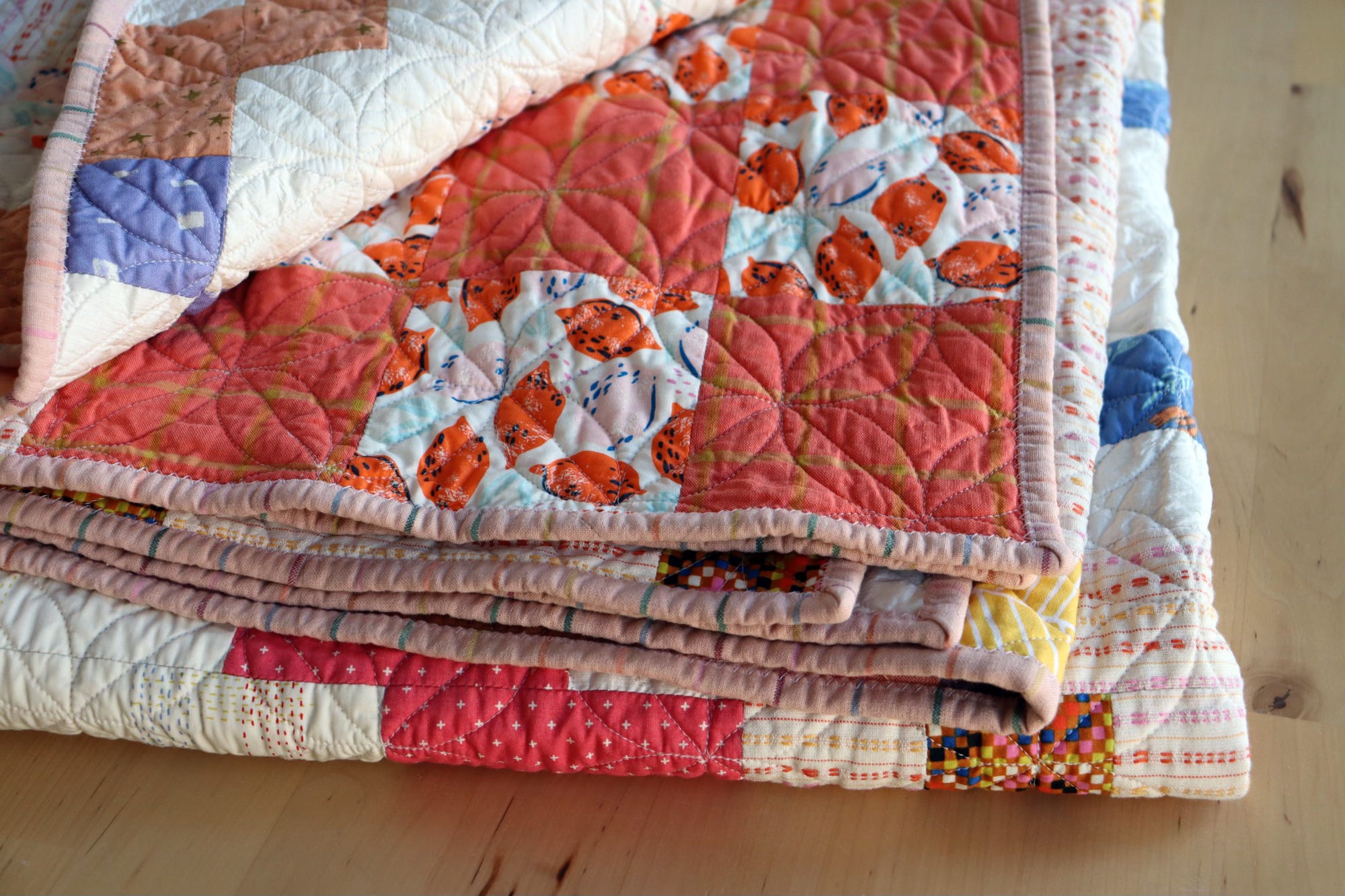 My only regret is all the crease lines in my photos. I foolishly left the quilt folded up in my suitcase all week before getting it out the last day to photograph. Ha!