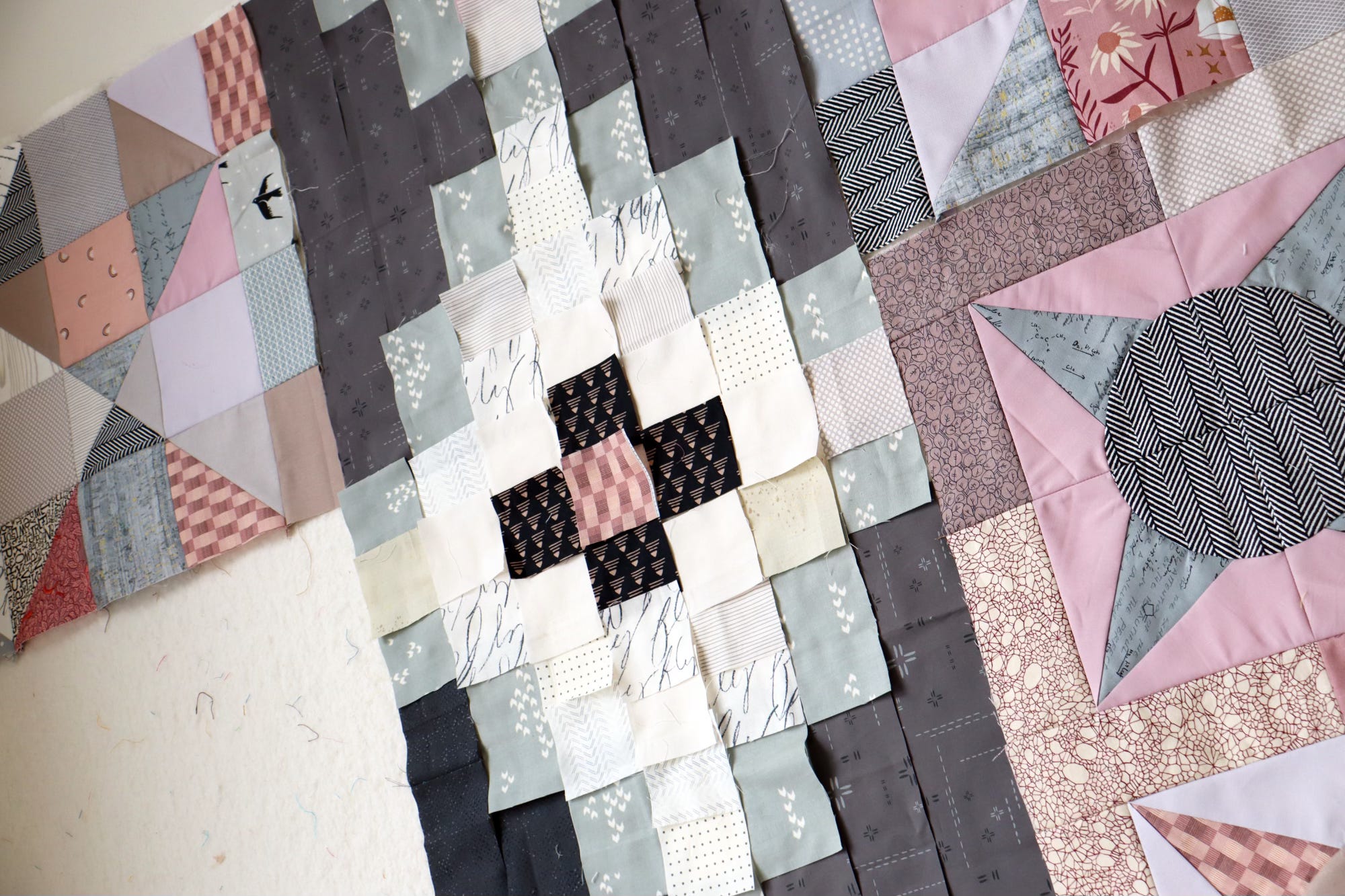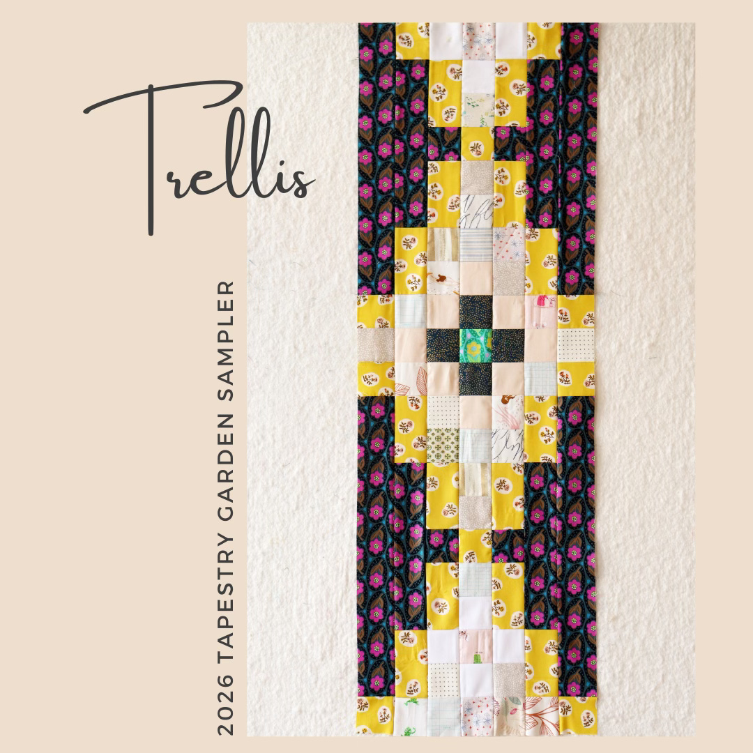 It’s the second month of our year-long Tapestry Garden journey, and club members have just started on Thorn blocks for our modern sampler quilt. I’m working ahead as part of my pattern-production process. This week I sewed the Trellis block!