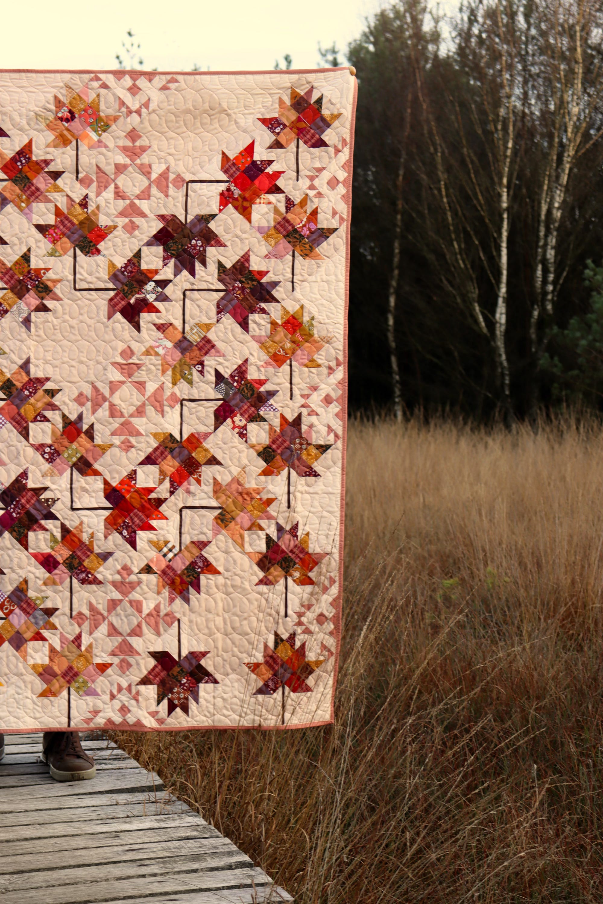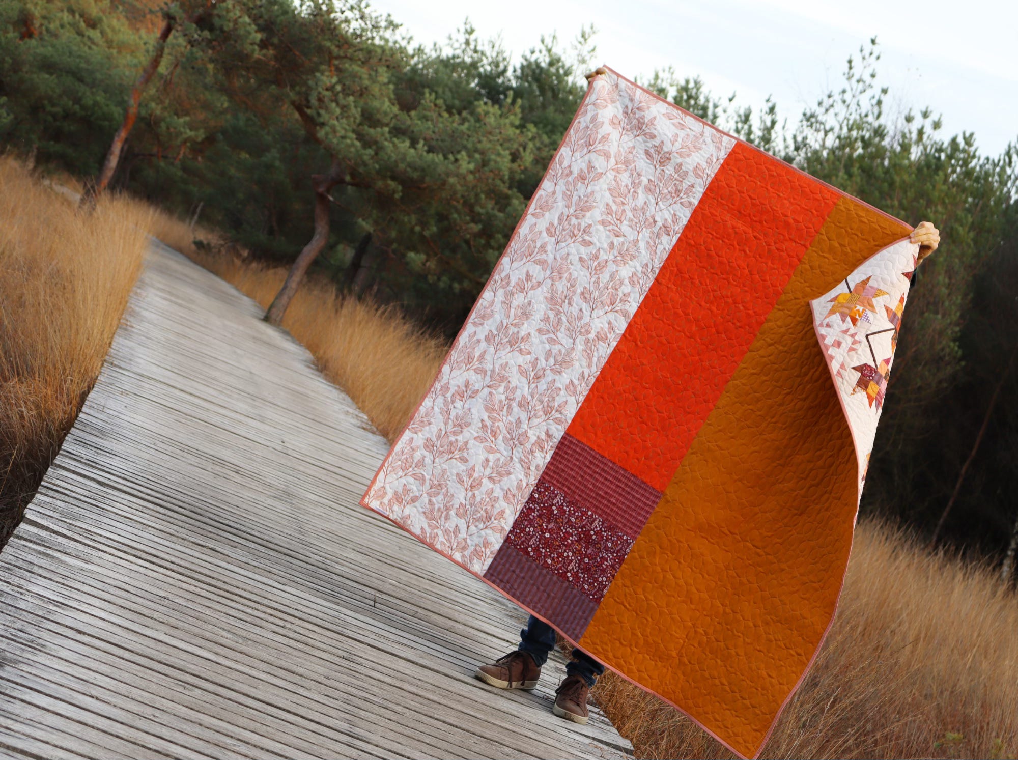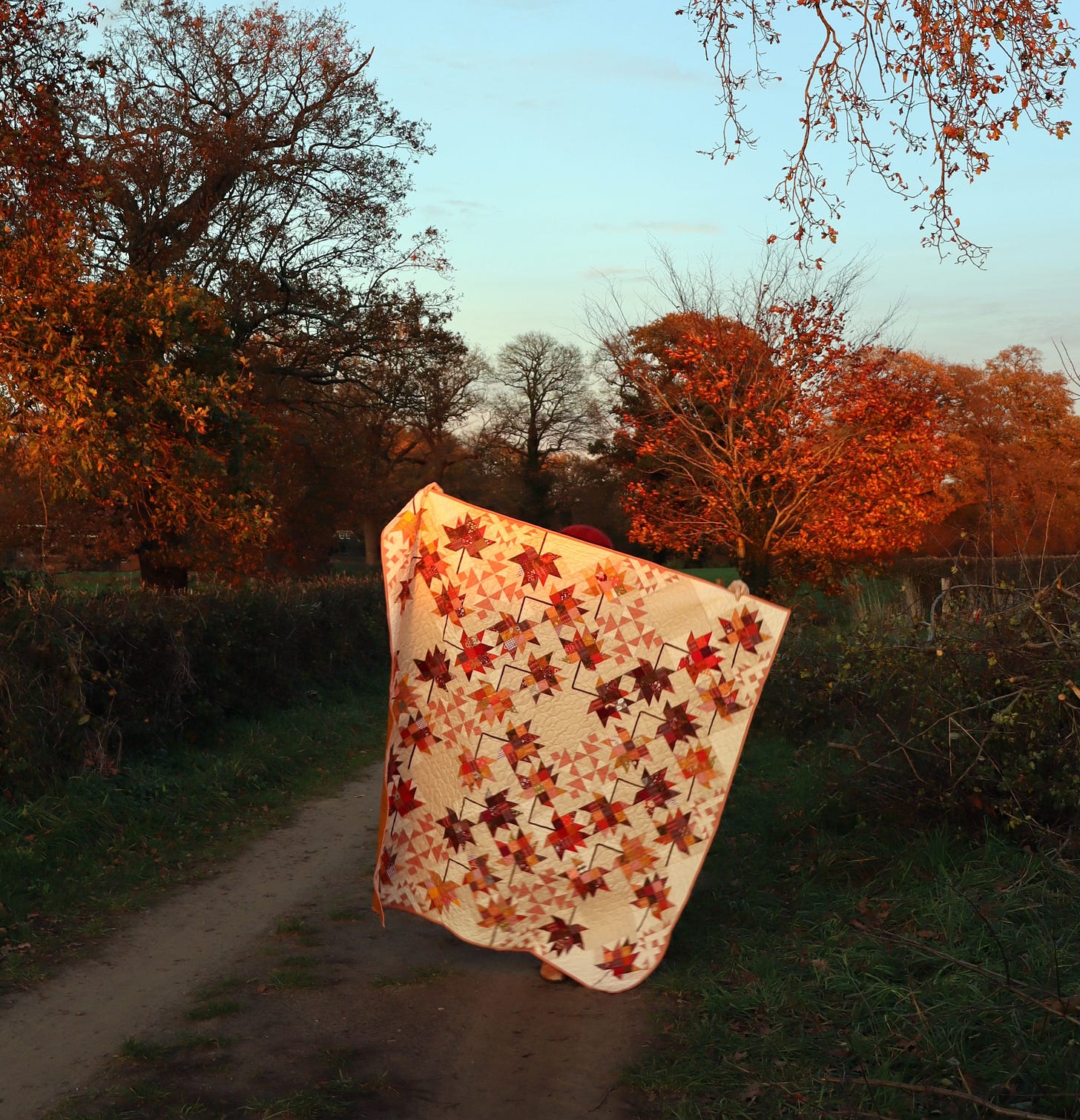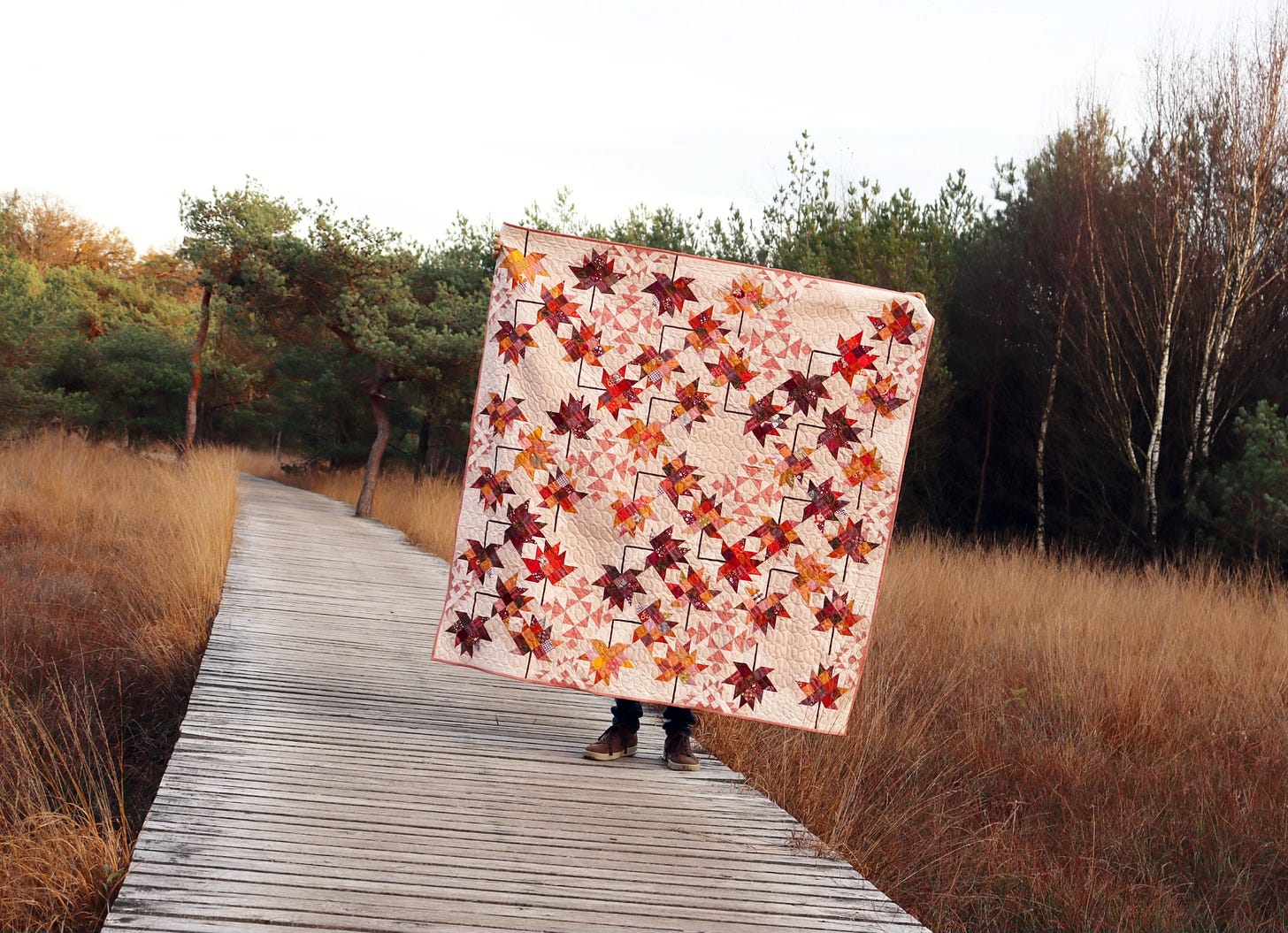 For the quilting I used continuous eight again. It’s sweet, rounded shapes soften all these fancy points. For binding I used Art Gallery Cinnamon - same as for the Sunlight and Breeze blocks. These simple fabric choices give the quilt a restful, warm background, so that the leaves themselves become the story.